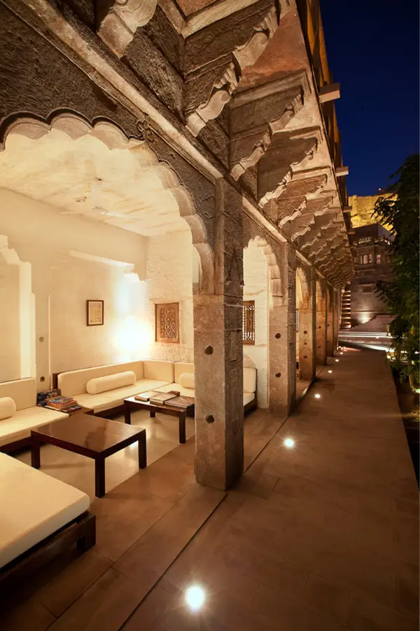 Set beneath Mehrangarh Fort in Jodhpur’s old city, RAAS Jodhpur blends an 18th-century haveli with contemporary design, offering fort views, serene courtyards and refined Rajasthani hospitality in a striking modern heritage setting.