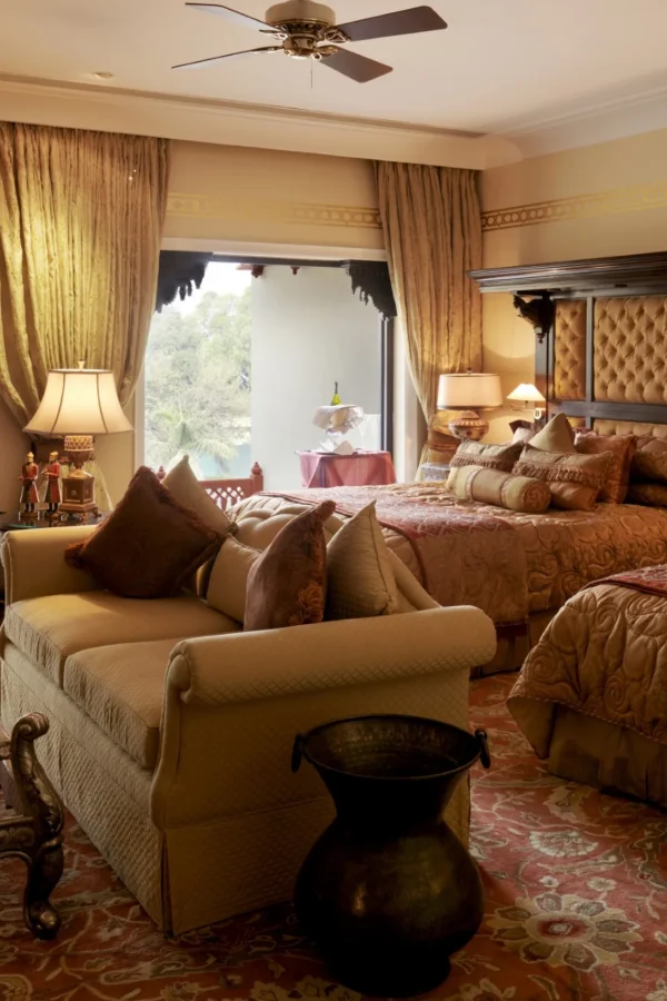 Originally built in 1835 and later transformed into the residence of Jaipur’s royal family, Rambagh Palace stands today as one of India’s most celebrated heritage hotels. Set amidst beautifully manicured gardens, the palace showcases grand marble corridors, intricate architecture, and timeless design that reflect its regal past. Every room and suite is thoughtfully restored with elegant furnishings, rich textiles, and modern comforts, preserving the charm of royal living while offering the highest standards of luxury. The palace’s peaceful surroundings and majestic setting create an atmosphere where history and refinement come together effortlessly.